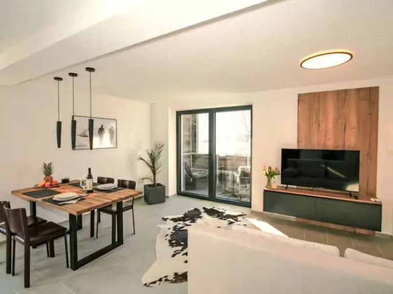 Located within Innsbruck city limits, this modern apartment offers the best of urban living with a mountain backdrop. The stylish interior includes air conditioning, a walk-in wardrobe, and a dedicated workspace—perfect for extended stays. Guests can cook their own meals, enjoy the garden and outdoor dining area, or take a quick walk to nearby public transport. It’s an ideal base for couples or digital nomads who want comfort with alpine flair.