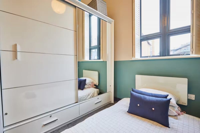 This is a comfy serviced studio in Manchester’s lively Northern Quarter with king-size bed, kitchenette and private bathroom. Guests can enjoy free Wi-Fi, Chromecast TV, weekly housekeeping and complimentary access to the on-site gym. It is a perfect retreat for solo travellers or couples who want a relaxed, convenient base near great dining and nightlife plus easy transport links across the city.