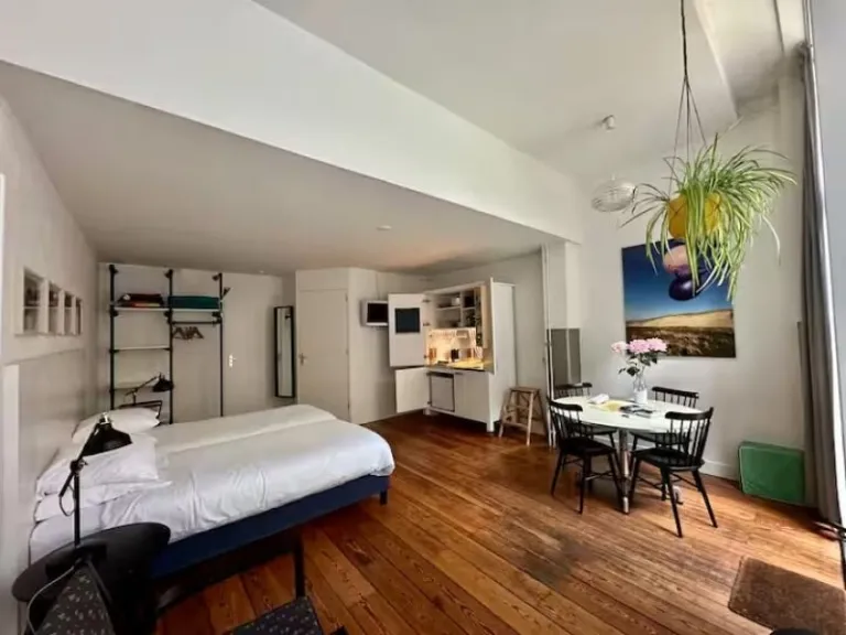 Located on Amsterdam’s oldest canal, this stylish 60m² basement loft offers a cozy yet luxurious escape just steps from the city’s highlights. The interior features sleek décor, a V-spring king bed, a new bathroom, and a kitchenette with modern amenities. Guests can enjoy views of the canal from the comfort of their room or step outside to explore cafés, museums, and shops nearby. Though below street level, this Airbnb in Amsterdam feels airy and bright a tranquil hideaway where guests can relax and watch the world go by above.