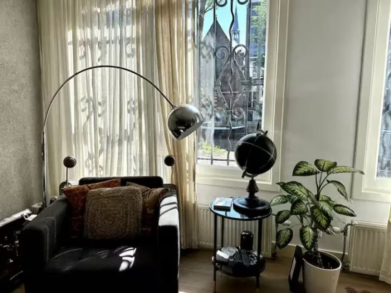 Tucked away on a peaceful pedestrian street, this cozy apartment offers both convenience and calm. Just minutes from Dam Square and the Central Station, this airbnb in Amsterdam features a comfortable living room with Apple TV, a well-equipped kitchen, and a serene bedroom for restful nights. A private terrace surrounded by greenery is perfect for enjoying morning coffee or a quiet evening meal. Despite being in the bustling city center, the home feels like a secret retreat ideal for couples seeking relaxation without leaving the heart of Amsterdam.