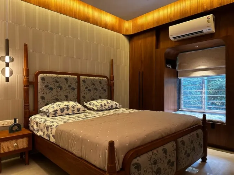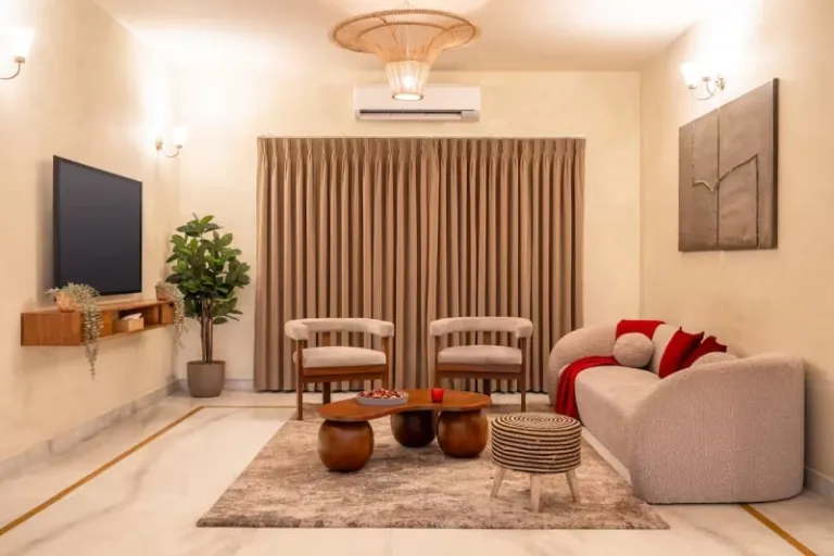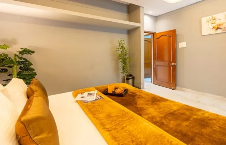 This is a fantastic Airbnb option in Hyderabad if you’re looking for a luxury staycation in the famous Kondapur area. All the bedrooms and even the living room will have air-conditioning here. That’s not all, facilities such as wifi, dedicated workspace, and even hot water are provided as well.