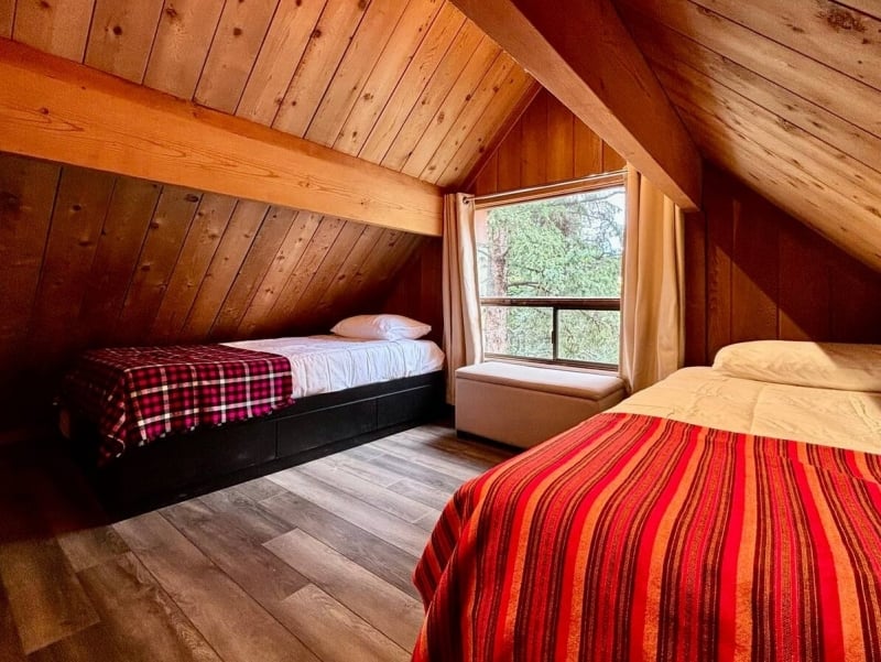 This is a Bavarian-style retreat that promises a unique staycation experience for couples. The vibrant decorations, retro ambiance, and quality lighting all make the indoor space really appealing. You’ll also be living in a quiet neighborhood as well, that too with easy access to the slopes. Additionally, monthly stay is also allowed here.
