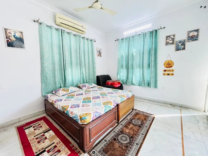 This is a budget-friendly Airbnb in Udaipur that’s perfect for those big families to relax and go explore the beautiful lakes. In fact, you’ll have a total of 3 bedrooms here with accommodation for over 8 members. Furthermore, the home features large windows and balconies that provide you with great lake views. Additionally, monthly stays are also accepted here.