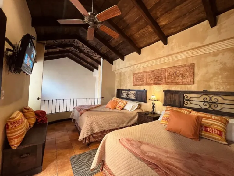 If you prefer a single-bedroom apartment that gives out those luxurious vintage vibes, then this is a great choice. It is nestled in the center of Antigua. Besides the beautiful retro space, guests will also have a fully equipped kitchen, full bathroom, and patio with fountain. Moreover, the 24-hour security facility makes this an extremely safe place.