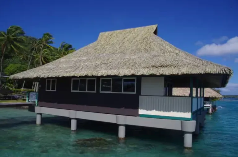 This eco-friendly retreat is surrounded by tropical greenery and peaceful scenery. Natural materials and open-air spaces create a calming connection with nature. Guests can relax in privacy while enjoying modern essentials. The setting is ideal for couples looking to disconnect and recharge. A unique stay for nature lovers visiting Bora Bora.