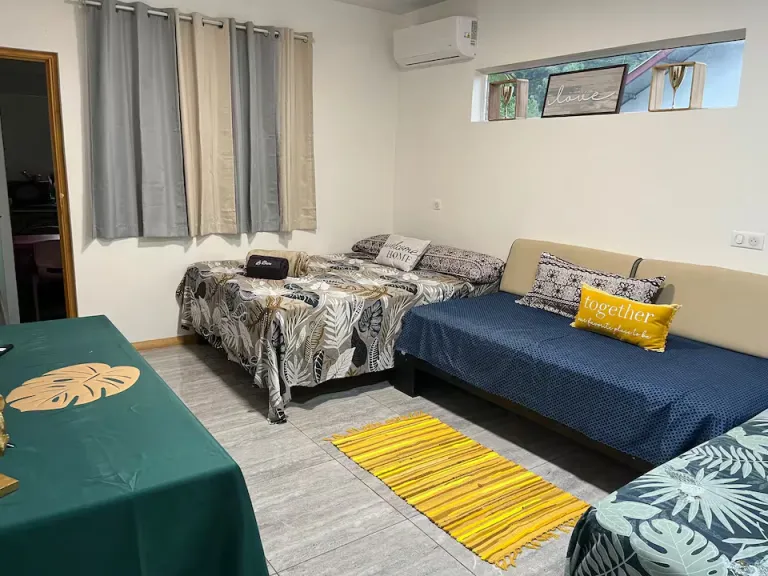 This large family-friendly house features multiple bedrooms, a full kitchen, and spacious living areas. Bright interiors and outdoor seating create a welcoming holiday atmosphere. Guests can enjoy easy access to beaches and nearby shops. The extra space is perfect for groups or families travelling together. A practical and scenic option for longer island stays.