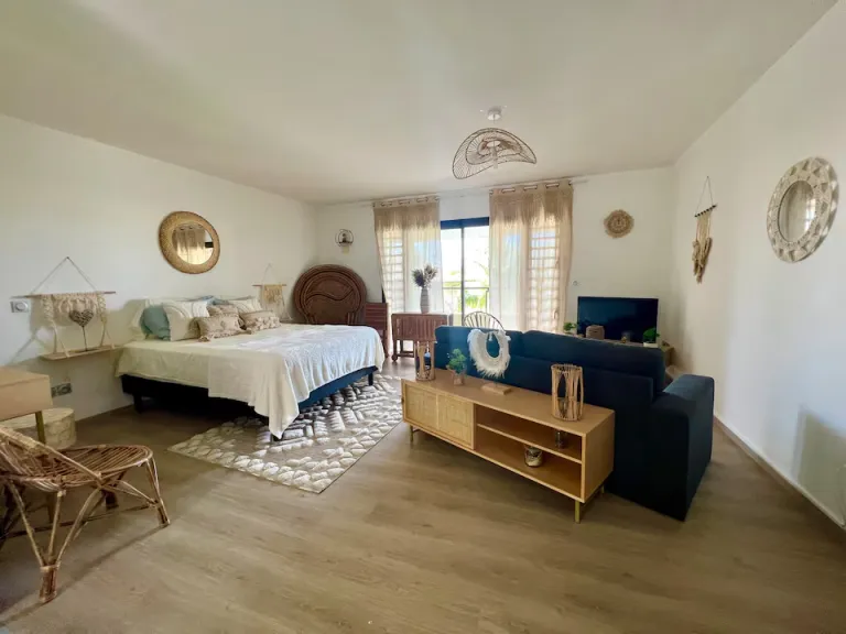 This sleek apartment combines modern interiors with beautiful sea views from a private balcony. The open-plan layout includes a stylish kitchen and cosy living area. Guests can enjoy both comfort and convenience near the island’s main attractions. Beaches and restaurants are within easy reach. A smart option for a stylish island holiday.