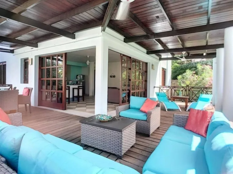 This three-bedroom villa can be described as the perfect tropical getaway. It is located on the beautiful Blue Bay Golf Resort, in a beautiful and quiet area. Thus, guests can also access the stunning private beach in the resort. The stay is surrounded with greenery and waters, sure to calm your heart and souls.