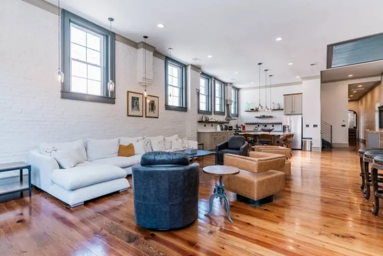 This is a perfect loft Airbnb in Macon Georgia for those who just need a large and comfy space to immerse themselves in serenity. The space is loaded top-quality furniture, all standard amenities, and lovely decor. Another major highlight is the rooftop deck, perfect for chilling with your group and enjoying the views.