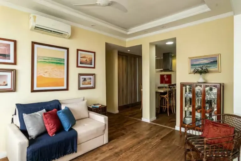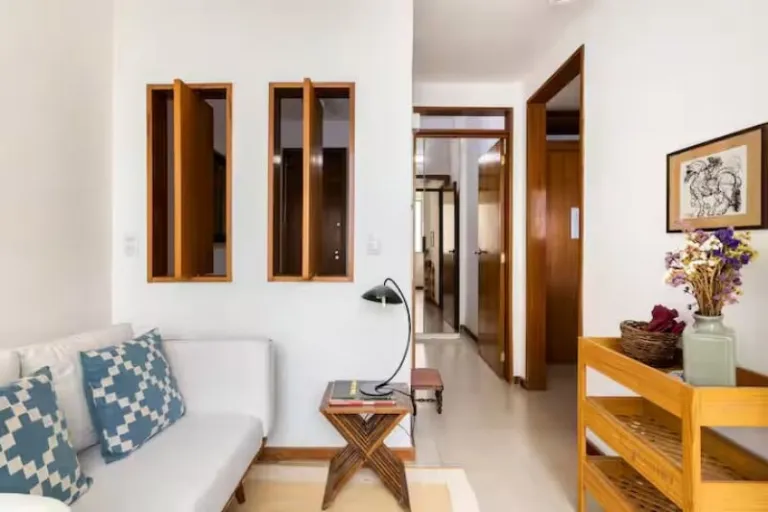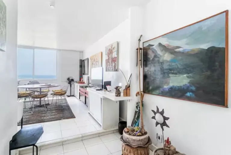 Set in a spacious beachfront apartment, this is one of the airbnbs in Copacabana that delivers panoramic sea views and excellent privacy. High ceilings and thick walls keep the space cool and quiet. Guests share access to a well-equipped kitchen and enjoy easy access to supermarkets, restaurants, and transport. It’s a great option for solo travelers or couples seeking value and location.