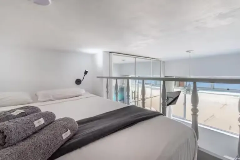 Designed with modern travelers in mind, this stylish apartment sits directly in front of the beach. Workstations, fast Wi-Fi, and open living areas make long stays effortless. Floor-to-ceiling windows frame surfers and beach life below, while the king-size bed ensures restful nights. The layout balances productivity and relaxation seamlessly.