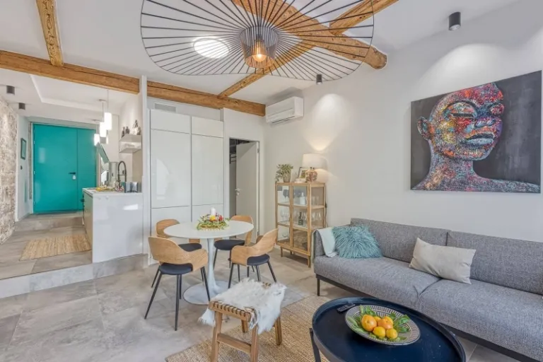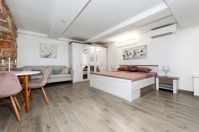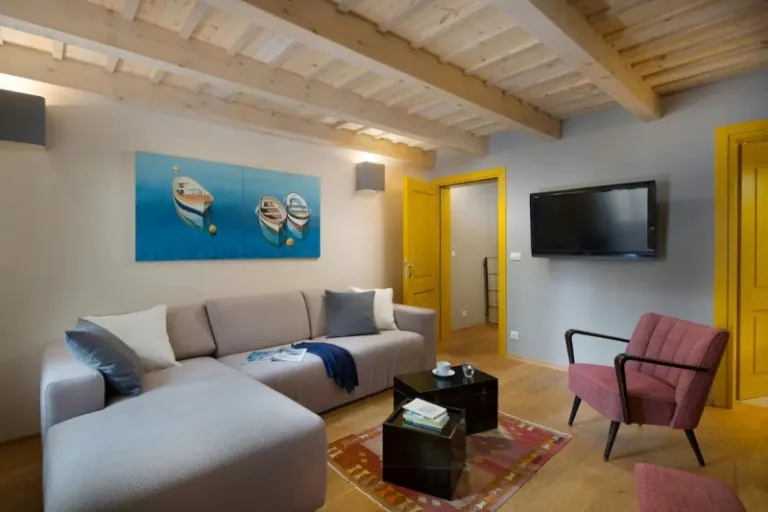 This is an intricately designed apartment that stands out visually. The space is extremely charming and certain to impressive guests. In fact, it gives out those star hotel presidential suite vibes. Furthermore, some of the best eateries in Rovinj are right besides this property.