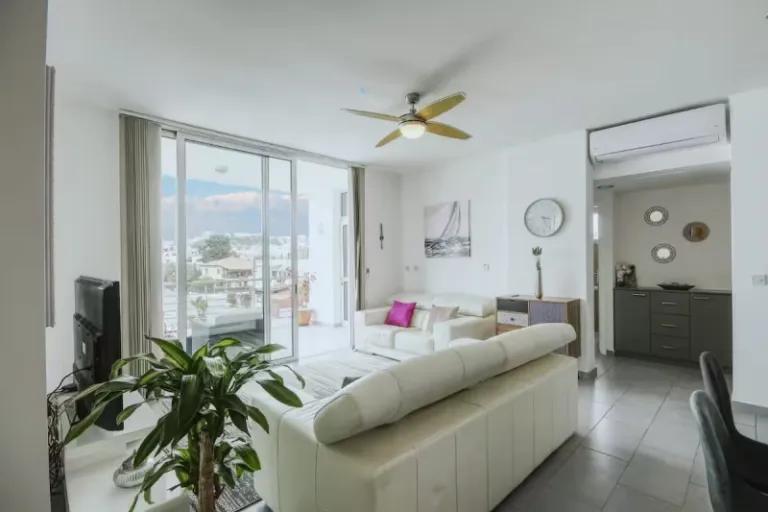 This is a modern and stylish apartment that’s located right behind the famous King Avenue Mall. This Airbnb is kind of a bargain considering what they offer for the price paid. In addition to having a gorgeous living space, you’ll also have access to Smart TV with Netflix, mini library, working station, and even a cool terrace area with sunbeds. Furthermore, it’s a perfect option as well for long term stays in Paphos.