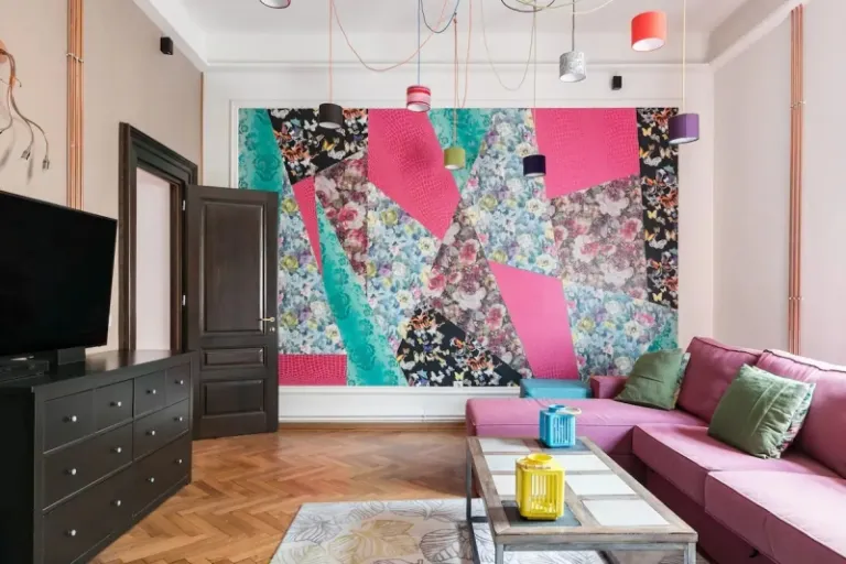 Listing name: Chill in Front of the Home Theater System at a Colorful Pad