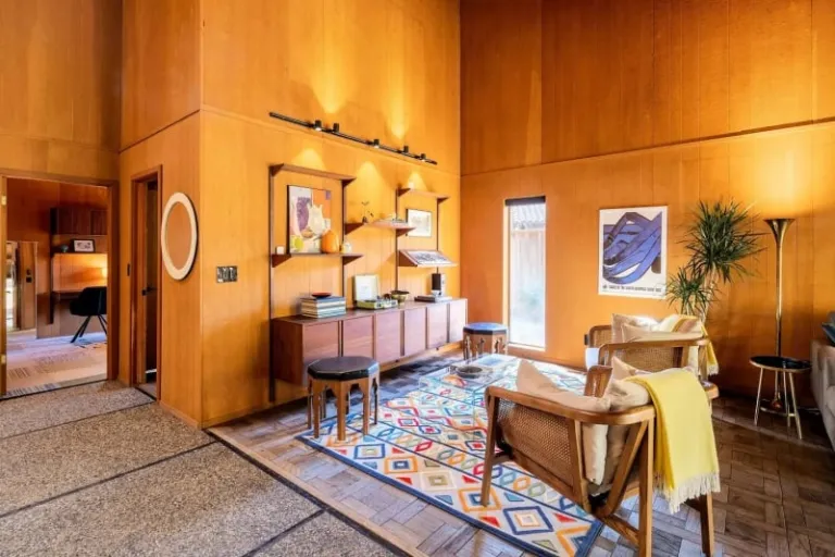 This is a private oasis that assures a tranquil experience for your family. It is a stunning home with stylish Mid-Century architecture and modern retro decor. The bright living area, elegant backyard, and cosy fireplace all assure a positive and soul awakening time for guests.