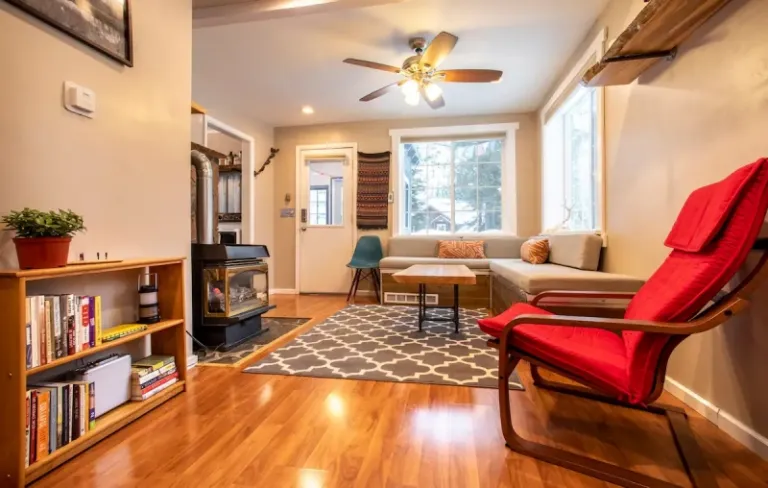 This is a cosy and tranquil Airbnb that’s surrounded by greenery and natural beauty. It is a beautiful cabin that’s located on the North Fork Road. Guests are bound to enjoy a homely vibe with all standard facilities here. Additionally, they have a plethora of books and games for guests.