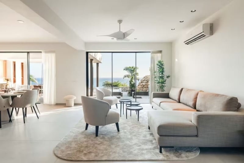 This is fabulous beachfront villa that offers you the perfect blend of coastal vibes, luxury, and scenic beauty. They haved opted for a classic yet high-end designing style indoors, and overall ambiance is quite serene as well. Furthermore, you’ll have amenities such as air-conditioning, wifi, and even a breakfast bar as well here.