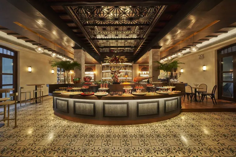 Did someone say sushi? KOMA, a Japanese restaurant and sushi bar, offers guests a multi-sensory gastronomic experience. Be awed as you enter the restaurant through a dramatically lit passageway lined with orange arches inspired by Fushimi Inari Shrine in Kyoto. This pathway paves the way to an elegant and intimate lounge designed by American design firm, Rockwell Group. Indulge in creative new cocktails or choose from the venue’s extensive sake list!