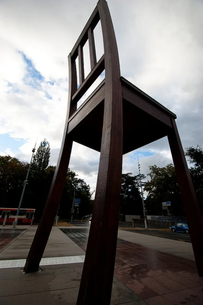 Feel small beside this TOWERING three-legged chair in Geneva fit for giants.