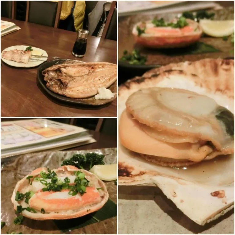 We dined at Raku Izakaya on the first night – recommended for their yakitori, buttery grilled Hokke fish, grilled king crab legs. 1 Big Hokke (1800 Yen. Good for 3 to 4pax as a side, a main for 2), 1 grilled snow crab (1390 Yen), 2 Hotategai (820 Yen each), 1 pork skewer (460 Yen, Best I’ve ever eaten!) and 1 Kurabitosyu (800 Yen, Hot Sake) cost us 6,577 Yen (approx. S$82) in total.