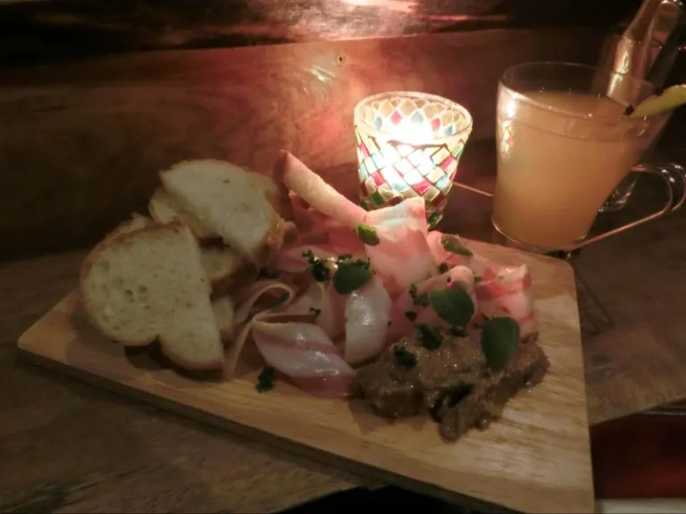 While doing research, I came across pictures of a cute little fridge door which turns out to be Bar Gyu (4 stars). We went for the sake of getting some pictures with the fridge door and a few drinks but surprisingly, it was really cosy with candles on our table and large window panes behind the bar where we watched the snow fall. Although a bit cramp, the bar served awesome charcuterie and cocktail. We waited around 15 minutes to get seats for both of us.