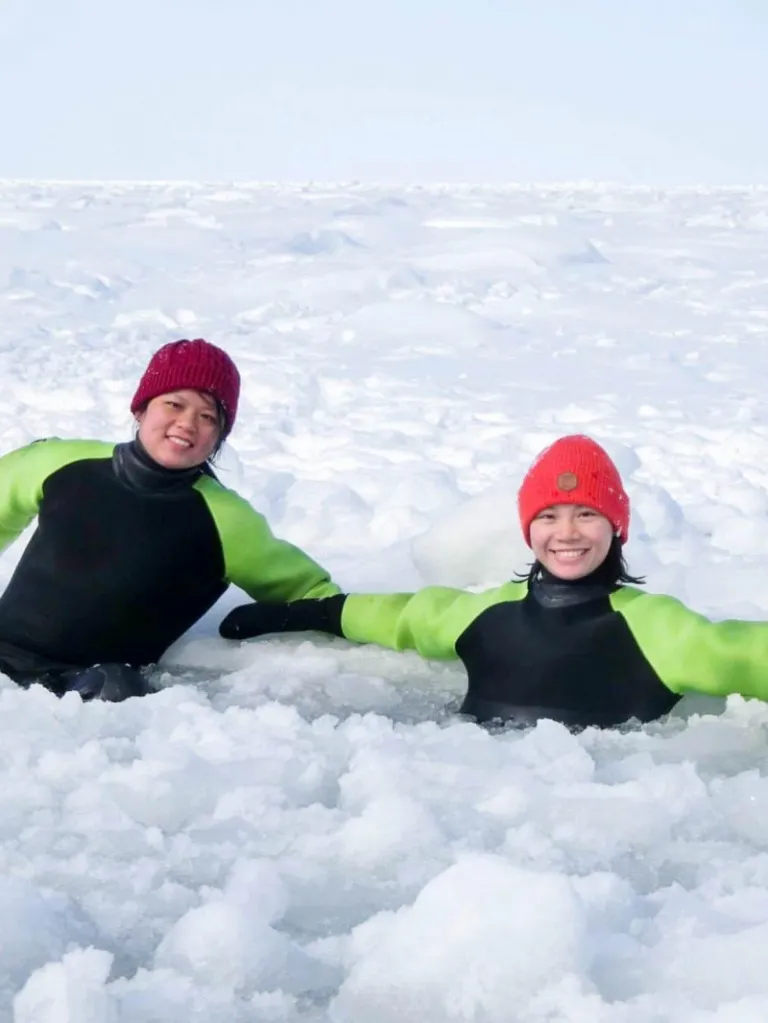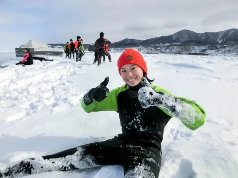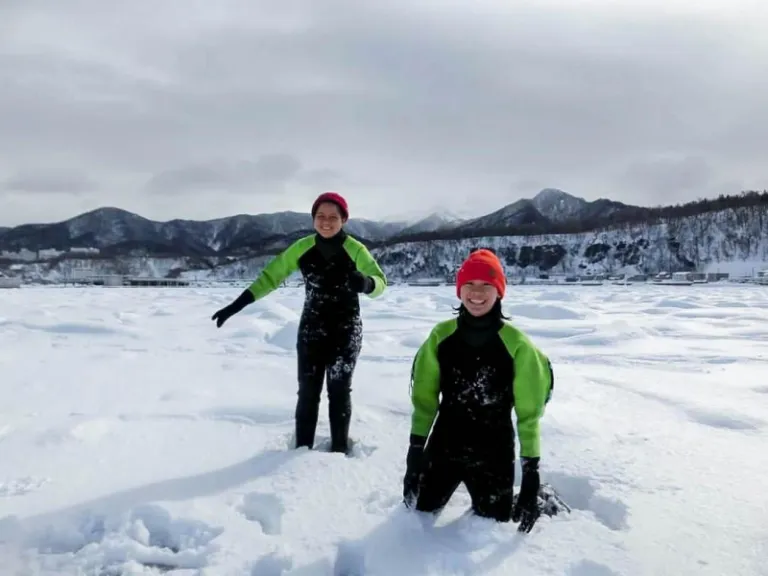 Sea of Okhotsk is the southernmost area in the Northern hemisphere where drift ice may be observed, and it is pretty cool to be walking on them. We walked pretty far out into the sea (yes, the sea is just below!) before we found a body of water which we dove into. Not exactly enjoyable, it required a lot of strength!