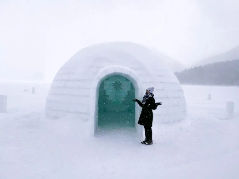 Lake Shikaribetsu Kotan is a winter village with igloos built on the lake when it freezes in winter. You can stay in the igloo houses with built-in ice bed, have a drink in the ice bar and listen to live-band at night, visit the ice chapel, experience ice sculpting or even soak in a hot spring in the open space. Unfortunately, for us, the weather was bad. The strong wind sent snow flying in the air and as a result, snowmobiles and hot springs were not operating. As we were not staying overnight at Lake Shikaribetsu and had to catch the bus back to Obihiro town at 1:10 pm, we didn’t manage to get a drink at the bar too as they only started serving in the evening.