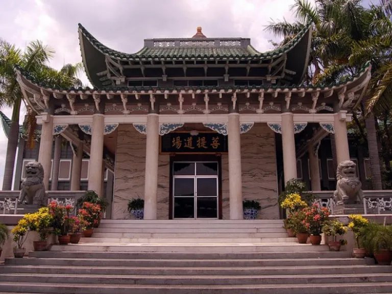 Visitors are allowed to wander around the temple grounds. The vicinity is landscaped with palm trees, shrubs and stone statues. The temple’s interior is a striking contrast of the grand design-style common to most Chinese temples. It is adorned with white Italian marble slabs and elegant wood carvings.