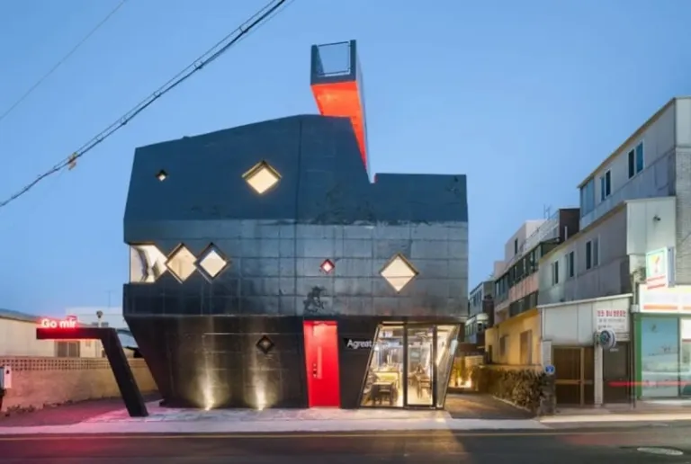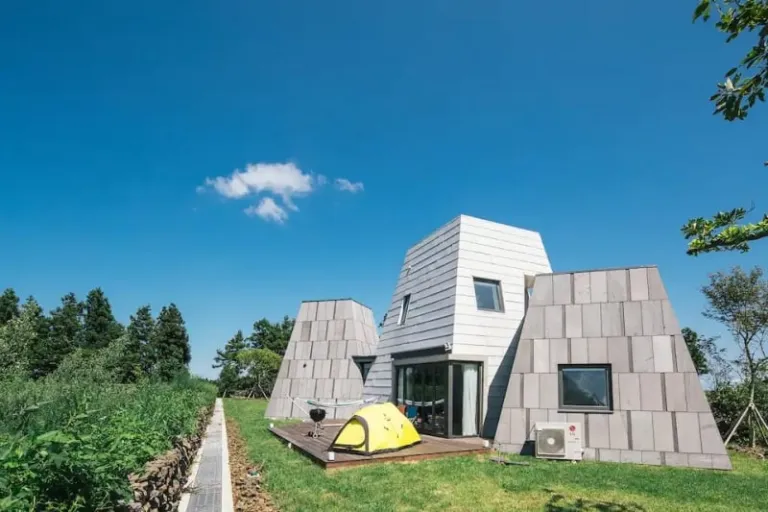 Travellers won’t be able to walk past this oddly shaped home without taking a second look. For one, the Jeju Airbnb looks like a miniature pyramid in the heart of the island. Here, in a quiet residential neighbourhood in Seogwipo, it definitely stands out.