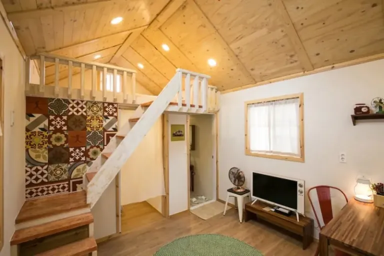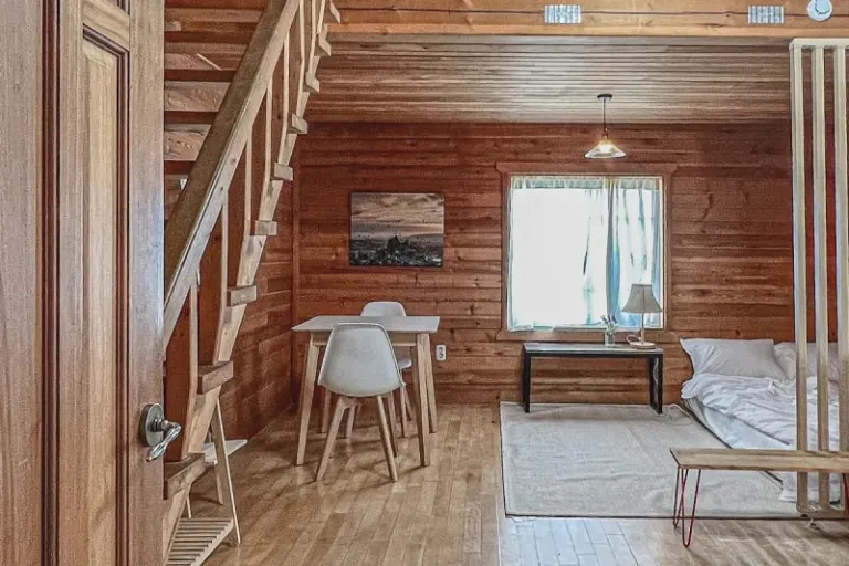 Find your way to this quiet cabin, a warm and cosy Airbnb retreat on Jeju Island. Found in a quiet little village, it’s perfect for a restful vacation surrounded by nature. The cabin set-up is ideal for small families, with a plush queen bed on the first floor and a queen topper on the second floor.