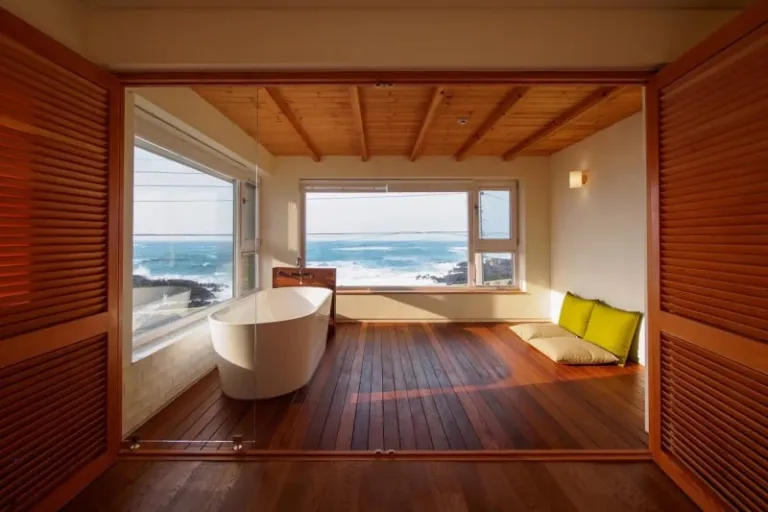 This cute little cottage has it all: From the cosy movie room for Netflix nights to the sun-drenched indoor deck overlooking the tangerine trees outside, we can’t help but fall in love with everything about this Jeju Airbnb. Every corner of the house is designed for complete relaxation, including the spacious bathtub that can fit two adults.