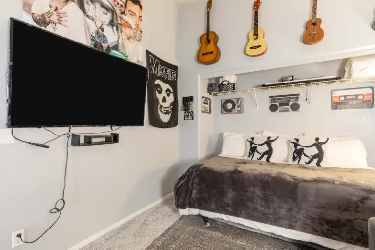 Is anyone here looking for a cheap Airbnb in Las Vegas? This quirky abode will be the perfect choice — take our word for it! Featuring four bedrooms with different designs, a solo traveller or a group of four or fewer will get to choose one preferred room that suits their taste. A heavy metal, music-themed room, or a cinema-inspired space? Your call!