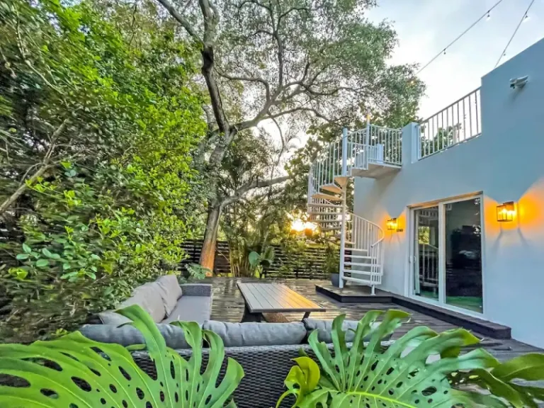 A treehouse isn’t what we’d normally expect from Airbnbs in Miami, but this charming escape in El Portal is a welcome surprise. It’s one of the best Airbnbs in Miami for a quiet yet accessible base in the city. Lush gardens and centuries-old oak trees keep the house tucked away from view. Step out onto the outdoor spaces — roof deck, fire pit, and grill station — to make the most of this tranquil corner of nature in the heart of the Magic City.