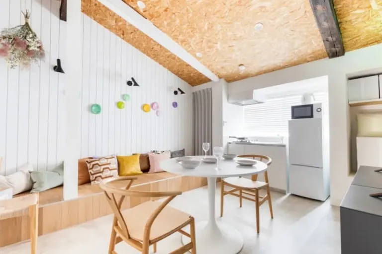 If an aesthetic Airbnb near Universal Studios Osaka is what you’re after, we recommend this industrial-style guest suite. Formerly a dance studio and garage, its interior is impeccable: thoughtfully placed lighting fixtures, sleek furnishings, and a newly renovated kitchen and bath.