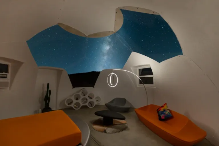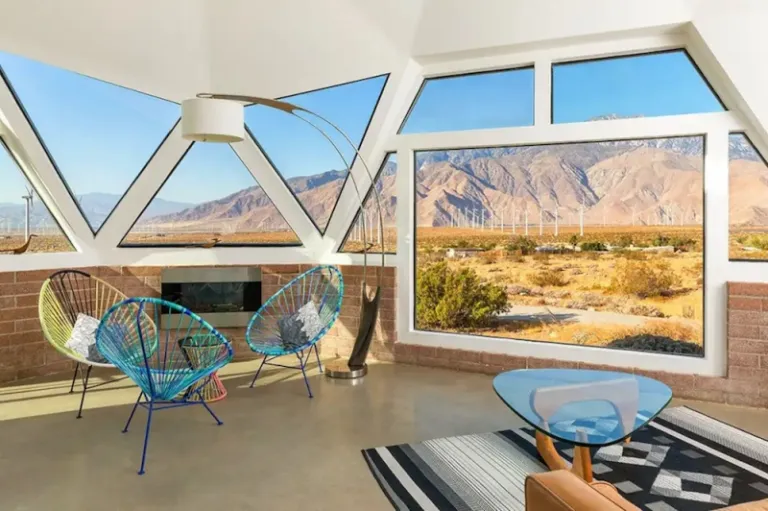 Emerging from this Palm Springs Airbnb, you catch a glimpse of windmills and native desert plants. Between the natural seclusion of the area and the well-appointed interiors of the dome, it’s a unique and socially distant hideaway you won’t want to leave.