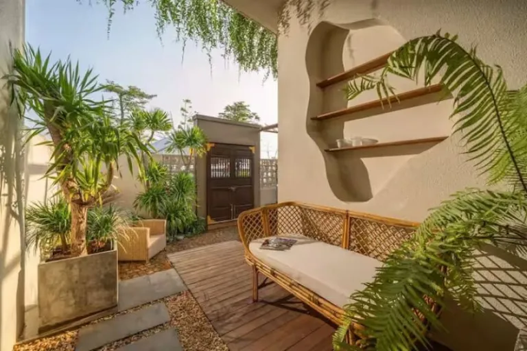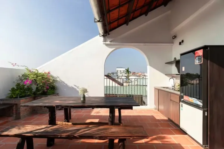 Inspired by nature’s five elements, this tranquil airbnb in Hoi An Hidden Boat House offers a meaningful, grounding stay. Natural light floods the space, while wood accents and soft textiles create a welcoming feel. Guests can cool off in the shared pool, use complimentary bicycles, or stroll to the Old Town’s historical spots within minutes. It’s a beautiful choice for those who want to immerse themselves in local culture while staying in restful surroundings.