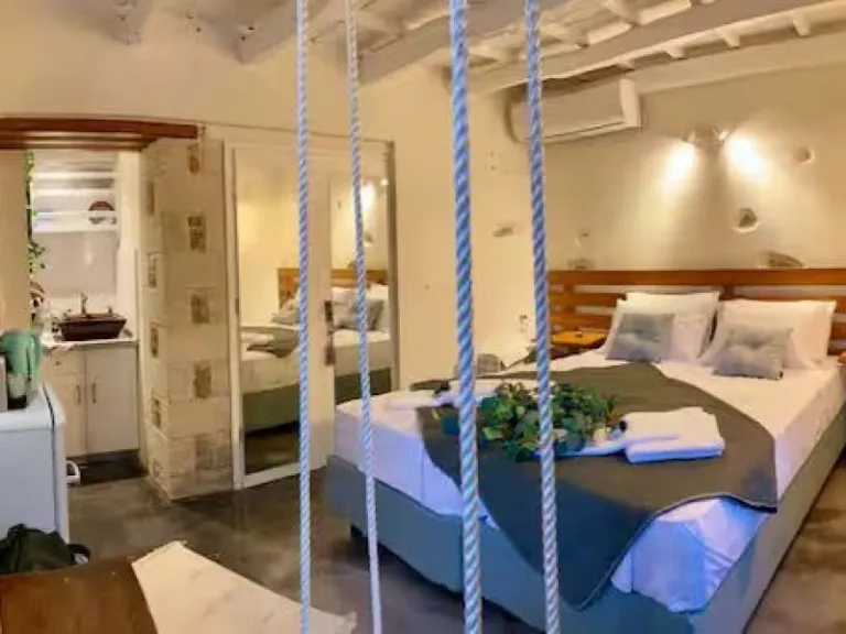 Steki Luxury Room 3 balances traditional architecture with functional, thoughtful design for travelers who want a refined but authentic stay. The apartment includes a cozy bedroom, a compact yet well-equipped kitchen, a dining nook, and a private balcony ideal for enjoying evenings in the historic lanes. Most major sights, waterfront cafés, and tavernas are reachable on foot, making it a great home base for first-time visitors. Soft linens and essential amenities add comfort, while its central placement ensures you experience Chania’s vibrant atmosphere from morning to night.