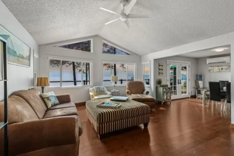 3. This riverfront haven invites relaxation with peaceful water views and family-friendly amenities