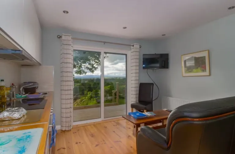 Only minutes from central Killarney, this two-bedroom apartment includes two bathrooms, a full kitchen and a spacious lounge with far-reaching mountain views. The layout suits families, two friends travelling together or remote-working couples seeking fresh air between work sessions. With easy access to shops, dining and park trails, it makes for an effortless stay where no car is necessary. Modern furnishings and well-planned living space help guests settle in quickly.