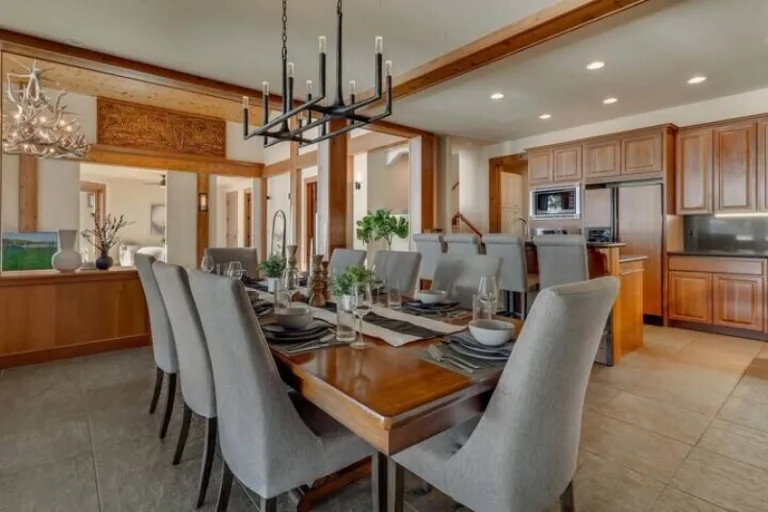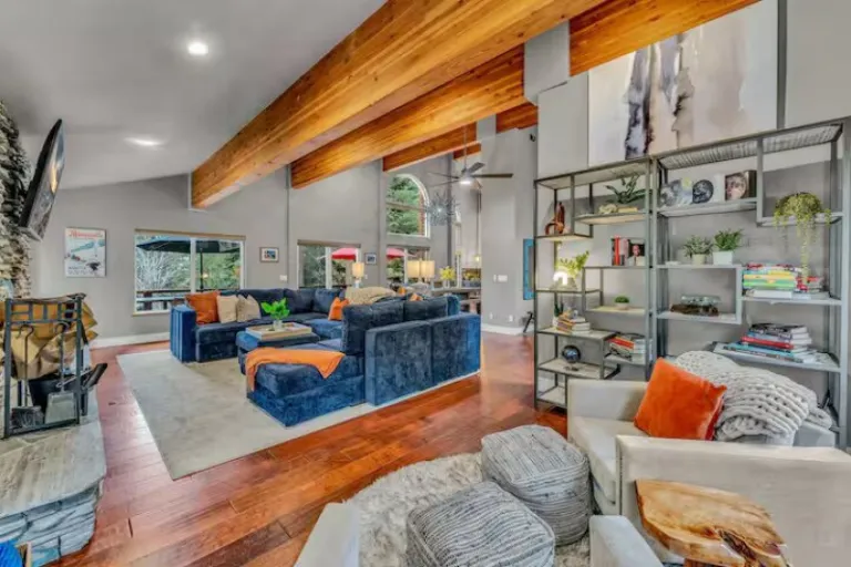 Nestled on three acres along the Truckee River, this state-of-the-art luxury retreat promises a one-of-a-kind experience. Offering both privacy and convenience, this airbnb in Lake Tahoe blends high-end amenities with natural beauty. Guests can enjoy a sprawling lawn, a rock bed creek, and the soothing sounds of the river while relaxing outdoors by the fire pit, swimming pool, or built-in hot tub. Inside, a caterer’s kitchen, massage room, and sauna ensure relaxation and entertainment. Equipped with world-class features, including Gaggenau Hausgerate appliances and Poggenpohl cabinetry, the home ensures a lavish stay. It is also just minutes away from skiing, hiking, and other outdoor adventures, making it an ideal destination year-round.
