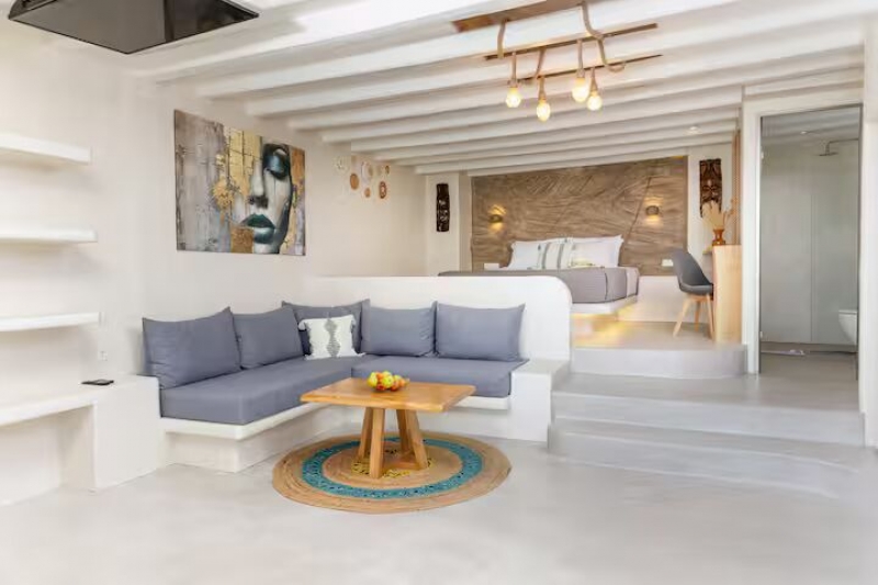 5. This cozy town suite blends modern comfort with Cycladic elegance