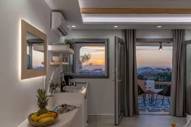 Set in the quiet area of Agios Polykarpos, the suite offers expansive views over the Aegean and the iconic Temple of Apollo. The outdoor jacuzzi and terrace create a calming space for guests to unwind while soaking in the landscape. Inside, the suite features modern furnishings, a comfortable bedroom, and thoughtful amenities. Its close proximity to town makes it convenient while still offering a peaceful escape from the busy streets.
