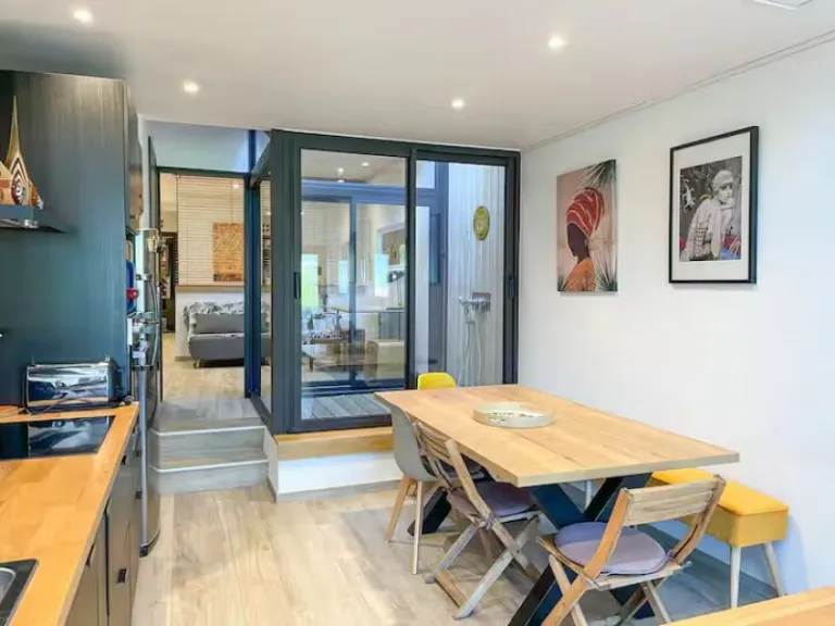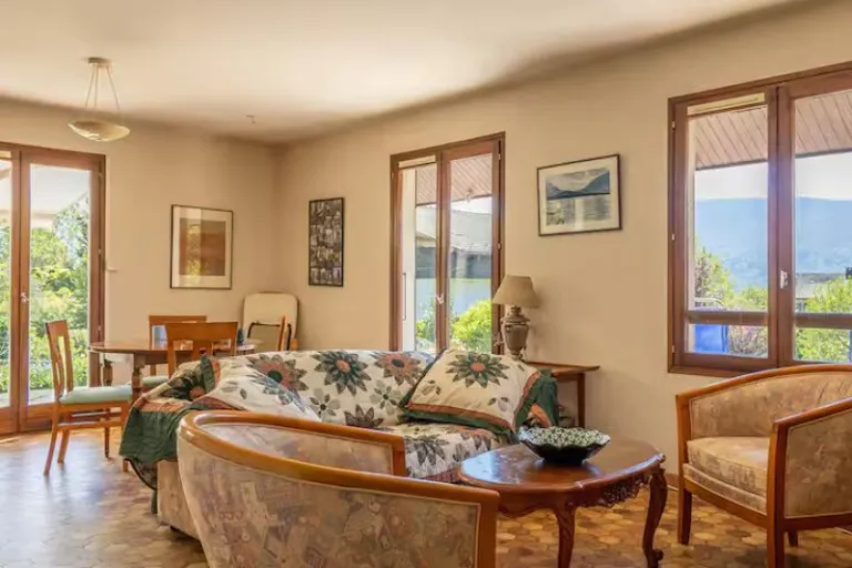 Set in Doussard, Villa Mariette is a newly renovated family retreat surrounded by a 1,500 m² garden. The five-bedroom home sleeps up to twelve and features a private pool, air conditioning, and several terraces for lakeside dining. Guests can enjoy nearby beaches, cycling routes, and water sports, or relax in bright, thoughtfully decorated interiors. With easy access to Annecy and local ski resorts, this is one of the airbnbs in Annecy that is the ultimate blend of luxury and tranquility.