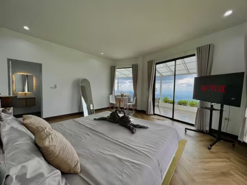Set high in Doi Mae Mon, this luxurious retreat combines boutique comfort with a breathtaking natural backdrop. The spacious room opens onto a balcony with a jacuzzi overlooking cloud-covered valleys. Every stay includes afternoon tea, dinner, and breakfast sourced from local farms. Guests can visit nearby coffee plantations or simply relax with Netflix as the sun sets over Chiang Rai’s hills. It’s an unforgettable blend of romance, comfort, and highland adventure.