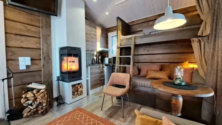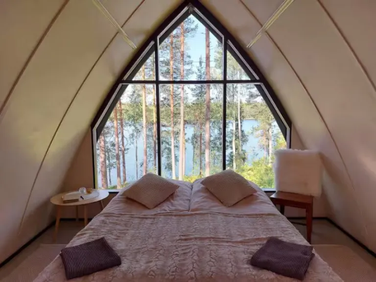 Nestled in the serene beauty of Kuusamo, the Magical Pond Nature Igloos are perfect for couples or solo travelers seeking peace, solitude, and the chance to see the Aurora Borealis. This is one of the airbnbs in Finland designed in Scandinavian style, with large glass walls that let you connect with the surrounding nature. Enjoy the silence, starlit skies, and a chance to see the Northern Lights from the comfort of your bed. A minibar and breakfast are included, and you can take part in activities like husky and reindeer safaris nearby.