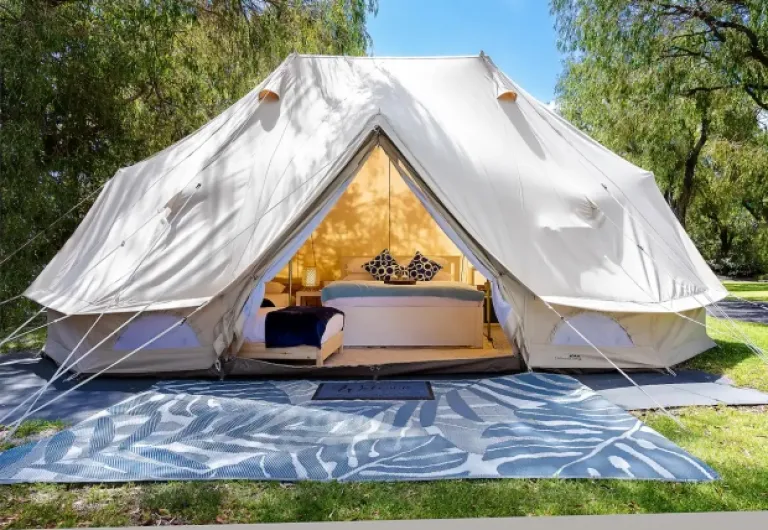 Experience the perfect blend of adventure and luxury at Busselton Villas & Glamping Village, just minutes from the centre of Busselton and a three-minute walk to Geographe Bay. Strike out ‘family glamping’ from your bucket list with this splendid tent house with all the convenience and creature comforts we’ve come to know and love.