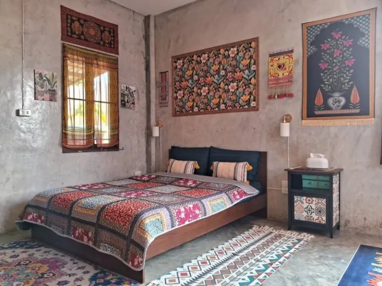 Set on a quiet rural road surrounded by lush farmland and rolling hills, this cozy cottage offers a perfect balance between solitude and accessibility, just 10 minutes from Pai town. The boho-inspired interiors burst with color, art, and handcrafted details. Wake up to bird songs, sip coffee as the mist rises over the mountains, or enjoy a moonrise from your garden. With a small kitchen, workspace, and scenic patio, this home is ideal for digital nomads or couples seeking a romantic rural escape.