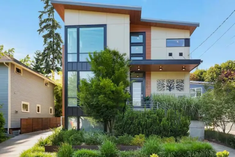 With its airy interiors and indoor-outdoor living spaces, this modern townhome feels like a stylish retreat in the heart of Seattle. Families will find two bedrooms, each with its own en-suite bathroom, along with a spacious living and dining area for gathering together. The design is contemporary yet warm, with thoughtful details that add comfort throughout. This is one of the airbnbs in Seattle with a rooftop patio, where guests can soak in wide-open sky views after a day of exploring the city.