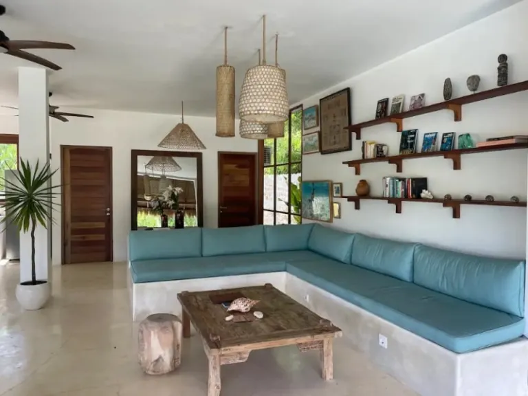 We can’t talk about the best Airbnbs in Uluwatu without mentioning this brilliant rustic dwelling, which is perfect for gathering with your loved ones. Here, you can dive into luxury at every turn – from the sparkling infinity pool to the plush en-suite bedrooms (one doubling as a private cinema for movie nights!).