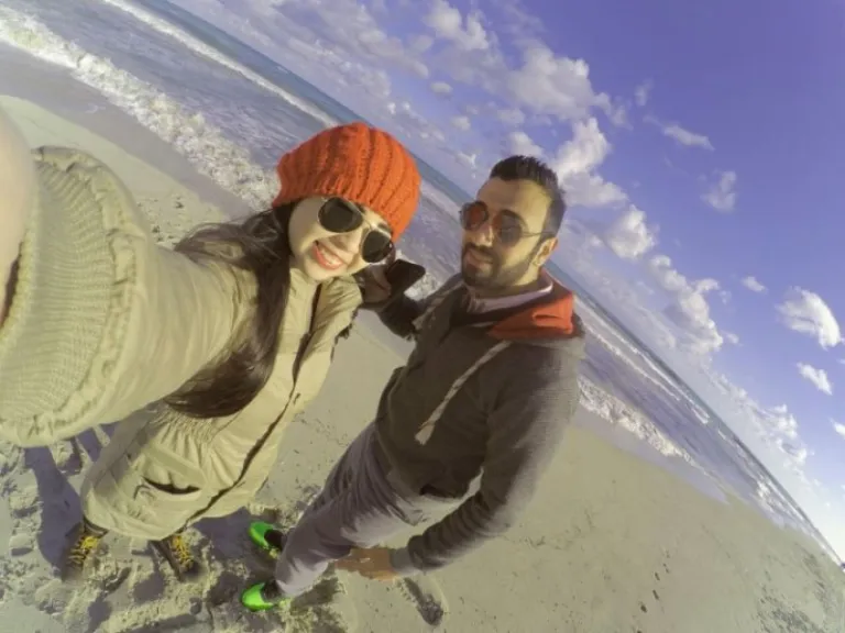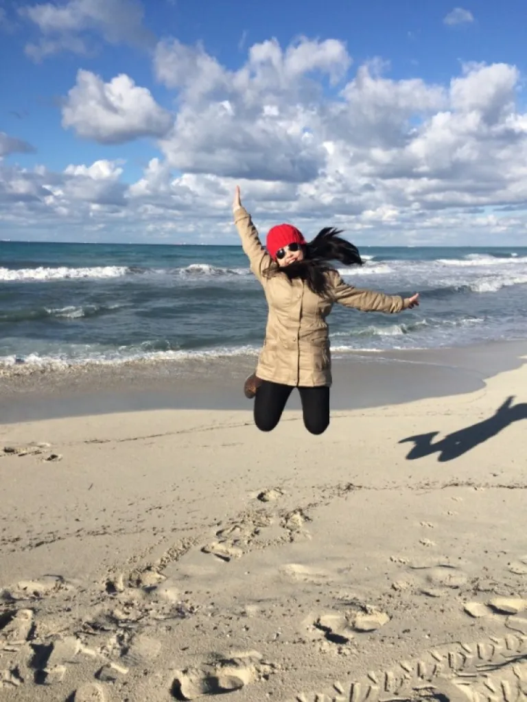 It was 10 degrees outside, so our beach outfits consisted of multiple layers of clothes beneath heavy winter jackets.